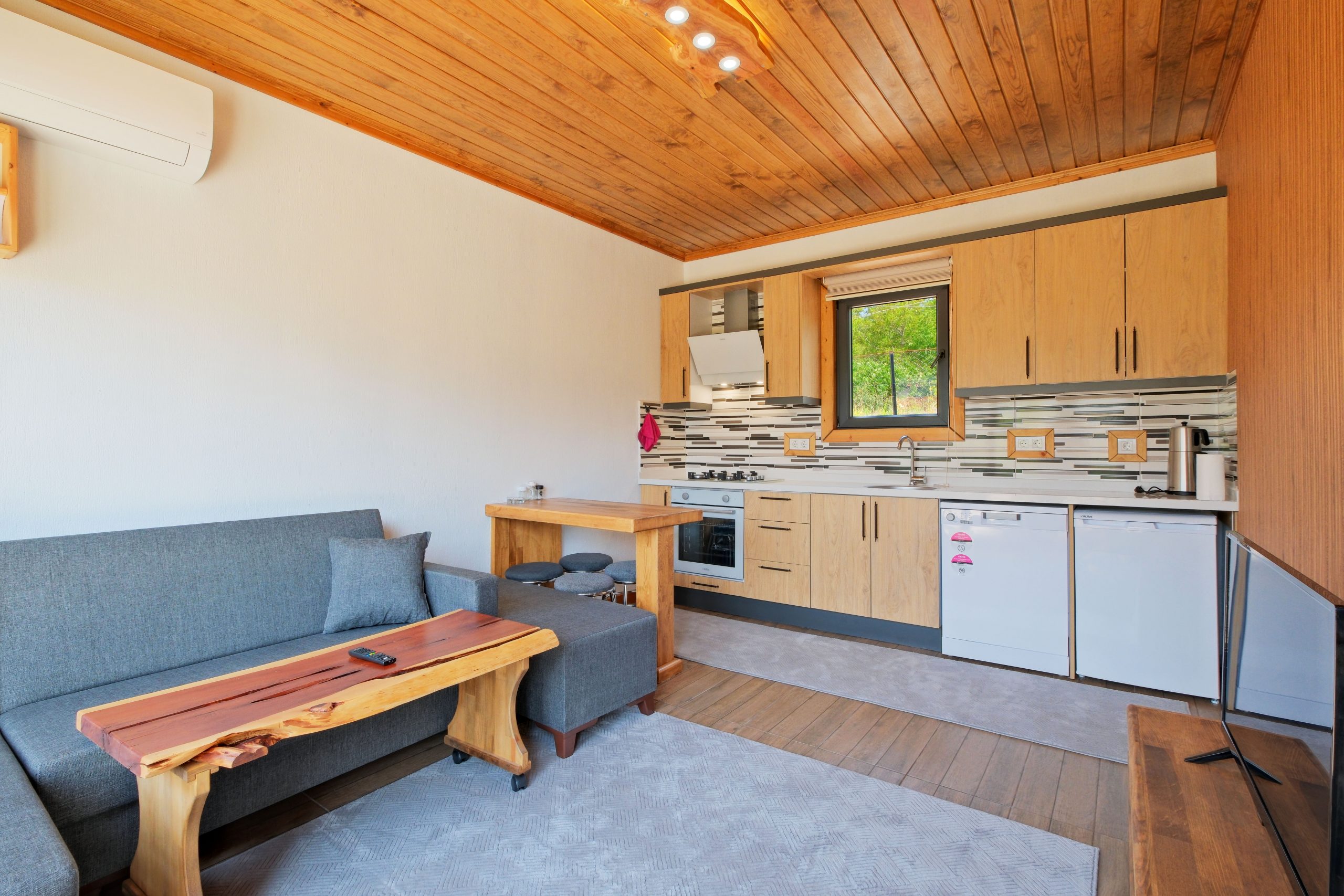 Bungalov modern ama doğallığını kaybetmemiş. Fotoğrafta ne görüyorsanız aynı, hatta daha iyi.